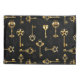 Patrón incomparable de llaves antiguas, doradas y de silueta sobre fondo negro.