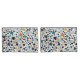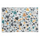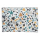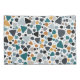 Un diseño de estilo terrazo con formas aleatorias en una gama de tamaños y colores.