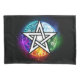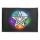 Pentagrama luminoso de dibujo artístico con cinco elementos mágicos, agua, tierra, fuego, astral, aire sobre fondo negro. Pentagrama de Wiccan. Wicca