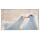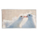 Imagen de dos palomas blancas de besos contra el fondo beige elegante. Texto blanco Sr. Anderson sobre el primer funda, Sra. Anderson sobre el segundo funda. Conjunto de dos almohadas con imágenes reflejadas. ¡Personalizable. Puede cambiar o eliminar los nombres de las plantillas o cambiar las imágenes. ¡Diviértete y sé feliz!