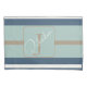 Funda De Cojín Personalized Blue Mint Tan Stripe Monogram Coastal