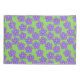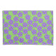 Esta funda de almohada tiene un diseño primaveral de un campo de flores periwinkle sobre un fondo verde.