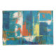 Añada un toque único a su habitación con estas almohadas personalizados. Estas fundas de almohada de expresionismo artístico presentan una mezcla de tonos azules con toques de naranja, amarillo y blanco.
