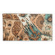 Diseño tribal azteca nativa norteamericano con un mosaico de plumas boho azul y marrón del suroeste, elementos florales de acuarela y formas geométricas.