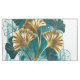 Rama con joyas, oro y hojas verdes de Ginko biloba en luz, fondo verde pintado. Ginko biloba
