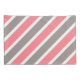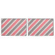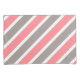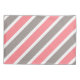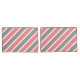Las almohadas modernas de la habitación de los chicas tienen un patrón diagonal rayado en rojo, gris y blanco.
