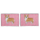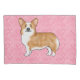 El original ilustracion personalizado de Destei de un color de abrigo rojo y blanco Pembroke Welsh Corgi raza perro con un color de fondo rosado con un patrón de corazones de diferentes tamaños.