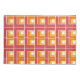 Esta funda de almohada tiene un diseño geométrico de L's en rojo, naranja y amarillo, colocado en diferentes direcciones sobre un campo de blanco.