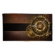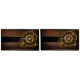 Antiguo, fantásticos relojes con engranajes de oro y latón sobre un fondo marrón y oxidado. Estilo Steampunk.