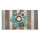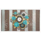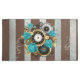 Reloj de época con estampado, adornado con joyas, manos de la hora de oro y números latinos con rosas turquesa sobre fondo marrón y rayas. Estilo Steampunk.