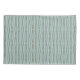 Esta funda de almohada tiene un diseño geométrico de una especie de ovalos de punta plana que se repiten a lo largo del diseño en marrón sobre un campo de azul pálido.