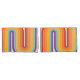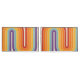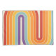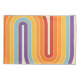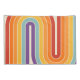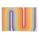 This artwork channels a retro graphic spirit, forming the letter‑like curve with parallel bands of red, orange, yellow, light blue, teal, and purple. The layered arcs flow in harmony, evoking the bold optimism of 1970s design. Set against a soft beige background, the vibrant rainbow palette stands out with clarity and rhythm. The composition balances simplicity and dynamism, creating a timeless visual that feels both nostalgic and modern.