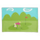 Esta almohada de Retro Golfer es más divertida que un día en los verdes. El estilo de los años 60, el diseño minimalista no es nada del otro mundo. Cuenta con un solitario golfista en un frondoso y verde callejón. El golfista moderno de mediados de siglo está haciendo una verdadera declaración de moda en sus elegantes, elegantes pantalones de golf y camiseta de fucsia. El guerrero rubio, en forma, del fin de semana está de manos y de rodillas intentando alinear un tiro. O tal vez está intentando darle a la pelota un empujón en la dirección del agujero. ¿Realmente importa? A su lado, vemos un solo club de golf. Enfrente de él está el hueco esquivo, con una bandera roja, que le está burlando. El fondo está formado por una línea verde de árboles personalizados, un cielo acuático y dos nubes blancas con forma de riñón. Este diseño es seguro que será un agujero en uno con tu profesional de golf favorito.