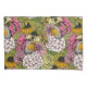 Patrón dibujado a mano con varias flores- hidrangea, anémona, peonía, dalia y aves robinas