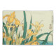 Irrises amarillos y grasshopper - Esta imagen está basada en una huella de arte antiguo de Katsushika Hokusai vintage de la década de 1820. El cuadro muestra un saltamontes en un jardín de flores de iris amarillas. Arte gráfico de diseño asiático japonés.