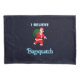 ¿Crees en Santa Claus? Una imagen de Santa Claus a lo largo de las líneas de Sasquatch de la película Patterson-Gimlin. El texto que dice "Bagsquatch" también aparece junto con el texto del personalizable que dice "CREO". Bagsquatch, alias Bigbag, es una figura esquiva, nocturna generalmente vista sólo una noche a fines de diciembre. A menudo se ve a Bagsquatch atravesando los tejados y, ocasionalmente, en las salas de estar, y a menudo se las encuentra muy cerca de caribú volador. Bagsquatch es fácilmente identificable por su brillante pelicula roja y blanca con guarnecido negro y icónico "Ho! ¡Ho! ¡Vaya!" vocalizaciones.