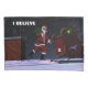 ¿Crees en Santa Claus? presenta a Santa Claus en el tejado de una casa después de entregar regalos. También aparece un texto de personalizable que dice "CREO".