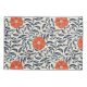 Seamless floral pattern with vibrant orange flowers and navy blue leaves on a beige background, creating an ornate, symmetrical design.