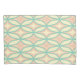 A seamless geometric pattern with overlapping teal circles forming diamond shapes against a peach and cream background, evoking a retro, calming vibe.