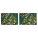 Seamless pattern of gold, jewelry, shiny fern branches and leaves on green, woodland, textured background. Golden fern.