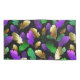 Seamless pattern of bright purple, green, and gold feathers on black Mardi Gras background. Design for the Mardi Gras holiday.