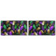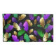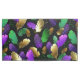 Seamless pattern of bright purple, green, and gold feathers on black Mardi Gras background. Design for the Mardi Gras holiday.