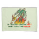 Si usted no puede tomar el calor, no cosquillee el dragón. La parodia divertida del refrán en vez de decir "sale de la cocina". Con las llamas de un fuego del dragón que soplan verde. Diseño chistoso del lema de la diversión.