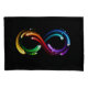 El símbolo de infinito está artísticamente pintado con cometas de colores arcoíris brillantes, luminosos y de movimiento rápido con largas colas flexibles sobre un fondo negro. Infinito arcoíris.