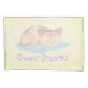 Un gatito acurrucado en una almohada sueña pacíficamente. Digitalmente creado con colores pastel.