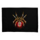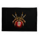 Mechanical, steampunk spider with gold, brass gears and a red glass lamp on a black background. Steampunk style.