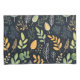 Seamless pattern of stylized green, yellow, and white foliage elements scattered across a dark navy background.