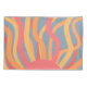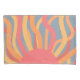 Esta almohada tiene un diseño natural de un amanecer hecho de líneas curvadas en rojo, amarillo y naranja, un sol y el cielo.