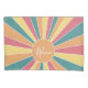 Un diseño colorido y retro de rayas de sol con colores pastel. Las rayas son pastas, rojas, naranjas, amarillas y azul claro. Añade tu nombre o monograma para hacer de esto una almohada personal que destacará entre tus amigos. El nombre es un guión de moda en blanco.