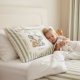 This adorable pillowcase features a heartwarming watercolor illustration of a sweet elephant gently hugging a cuddly teddy bear. Designed with a soft sage green and white stripe background, it's framed by an elegant, vintage-inspired border topped with a delicate bow. The name "Sofia" is elegantly displayed, making it a perfect personalized touch for any little girl's nursery or bedroom. Crafted with care, this charming pillowcase adds a touch of whimsical innocence and comfort to your child's sleeping space, creating a serene and inviting atmosphere for sweet dreams.