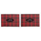 Clásico tartán rojo trenzado con tierno sello de Su y su.