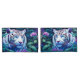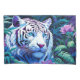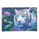 tigre blanco de ojos azules en hojas tropicales de flores verdes y verde azuladas y violetas AI Art de minx267