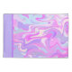 El diseño presenta un giro de mármol multicolor en un esquema de color rosa, violeta y turquesa.