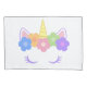 Diseño estilizado del unicornio con el cuerno, los oídos, los ojos, y las flores.