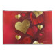 Composición vertical de rojo y oro, con texturas de valentinas hechas de Relieve metalizado y brocado sobre fondo rojo. Decoración día de San Valentín.
