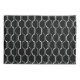 Esta funda de almohada tiene un diseño art deco de semicírculos blancos conectados con líneas en un campo de negro.