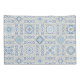 A seamless ornamental tile pattern featuring intricate blue floral motifs, geometric frames, and decorative scrollwork arranged in a classic European-inspired layout on a soft neutral background.