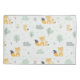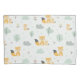 Ilustracion y patrón sin fisuras con zorro lindo y bosque. Mamá linda y zorro pequeño.