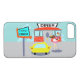 Sirva algo especial con este Funda de Diner iPhone 6 de 1950 y 39. El diseño de los dibujos personalizados incluye un edificio de ladrillo rojo con ventanas azules, puertas dobles grises y un cartel blanco que dice: "Diner"". En el estacionamiento, hay una segunda señal en un poste. El letrero tiene un fondo turquesa y una flecha roja intermitente que señala el camino hacia, &cotar;Don 's Diner." El letrero ha hecho su trabajo porque hay un auto amarillo brillante con las aletas aparcadas al lado. A pesar de que podemos verlos, los pasajeros del auto deben estar golpeándose los labios. Un monótono y joven carhop está patinando patinaje sobre ruedas en su camino al auto. Su pelo de morena está en una cola de poniente hinchable. Lleva un uniforme corto y rosado con guarnecido negro y delantal blanco. Equilibrado por un lado, el carrito lleva una bandeja negra con una hamburguesa gigante y una refrescante y anticuada botella de refresco. El fondo de la sala está verde azulado de nubes azul claro y de siluetas de cedros.