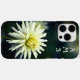 Flor blanca bonito con verduras oscuras en el fondo. Añade un toque único y personal a tu teléfono con esta hermosa fotografía floral. Con una flor de dalia blanca bonito, este funda protegerá su teléfono con estilo. Haz que tu teléfono sea especial con tus iniciales y compra ahora para añadir un toque de belleza botánica a tu equipo.