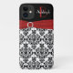 Funda-Funda para iPhone 11 personalizado moderno, rojo, negro y blanco, con cinta IMPRESA y broche con joyas.