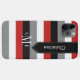 El funda iPhone 11 Pro, Funda-Mate personalizado personalizado de color negro, blanco, rojo y gris, tiene un patrón de fondo de rayas amplias y una cinta de banner negra con costura blanca a la que puede añadir su nombre, iniciales, monograma u otro texto. ¡Este nuevo funda moderno y de moda hace una declaración de moda para el joven y moderno modistonista! Si necesita ayuda, envíe un correo electrónico a niteowlstudio@gmail.com.