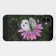 Este increíble estuche para iPhone 4 incluye una fotografía de una gran mariposa blanca, también conocida como mariposa blanca de col, sentada en una hermosa flor de margarita africana de color rosa violáceo. La mariposa tiene sus alas abiertas que revelan sus hermosas marcas.