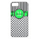 Este funda Funda-personalizado iPhone 7, blanco y negro personalizado, tiene un divertido punto de polka, un patrón de fondo rayado con una banda de impresión de jirafa verde lima y negro y círculo para añadir tu nombre, iniciales, monograma u otro texto. ¡Este nuevo funda moderno y de moda hace una declaración de moda para el joven y moderno modistonista! Si necesita ayuda, envíe un correo electrónico a niteowlstudio@gmail.com.