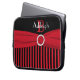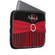 Esta funda de portátil personalizada de rayas rojas, negras y blancas con una cinta de FUX y un broche de cristal tiene cuadros de texto para que el personalizar con su propio nombre, iniciales, nombre comercial u otro texto. Si necesita ayuda para personalizar, envíe un correo electrónico a niteowlstudio@gmail.com.