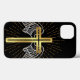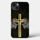 Cruz dorada, alas, fondo negro